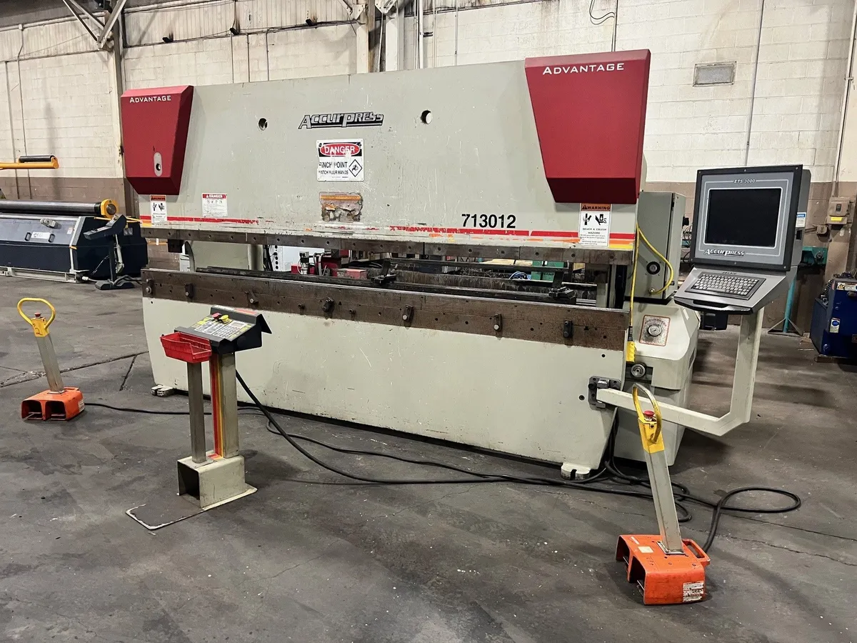 Explore this 2007 Accurpress Advantage 7-130-12 Press Brake offering 130-ton capacity, 12 ft bed, and 2-axis CNC. Features include ETS 3000 CNC control, dual ram feedback, and a hydraulic oil cooler. Ideal for precision hydraulic braking tasks.